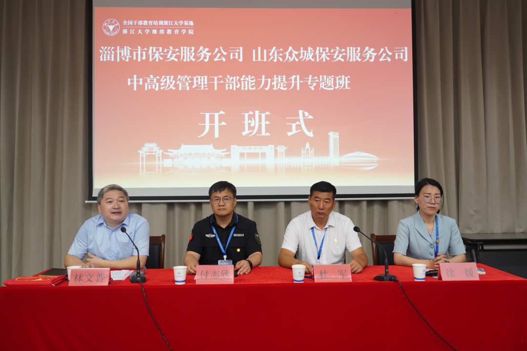 7月3日上午,淄博市保安服務(wù)有限公司、山東眾城保安服務(wù)有限公司聯(lián)合舉辦的中高級管理干部能力提升專題班(第一期)在浙江大學開班,60余名干部學員參加開班式。浙江大學繼續(xù)教育學院紀委委員、華東一區(qū)培訓部部長林文普致辭,市保安公司黨委書記、董事長付志欣作開班動員講話。