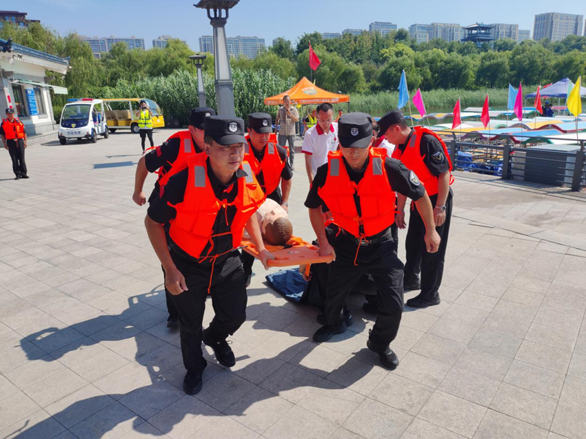為切實提升防溺水事故應急處置和救援能力,有效預防和減少溺亡事故,進一步做好齊盛湖公園安全保障工作,2023年8月4日,市保安公司在盛湖舉行“防溺水應急救援演練”。市保安公司黨委委員、副總經(jīng)理李鵬,市城市管理局黨組成員、市公園城市服務中心主任伊繼忠,齊盛湖公園管理辦公室科長王方福出席活動。