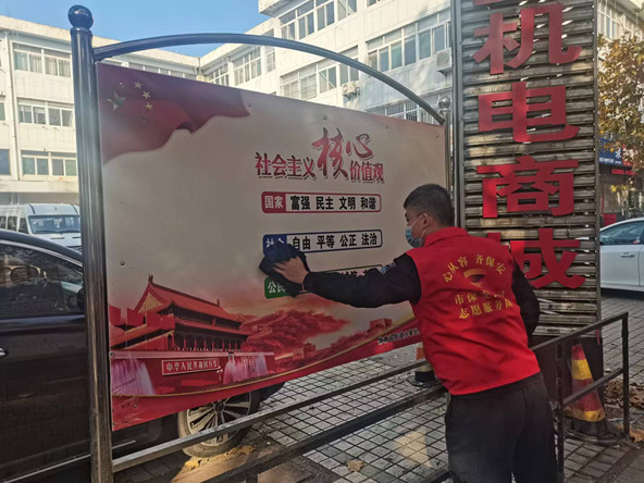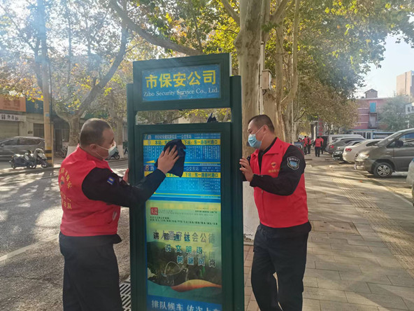 隨后,志愿者們又來(lái)到駐地附近的公共道路開展公交站牌和公益廣告牌衛(wèi)生清理工作,通過開展系列志愿服務(wù)活動(dòng),改善城市環(huán)境的同時(shí),引導(dǎo)廣大市民提高環(huán)衛(wèi)意識(shí),為營(yíng)造整潔有序、環(huán)境優(yōu)美的城市環(huán)境貢獻(xiàn)了淄保力量。