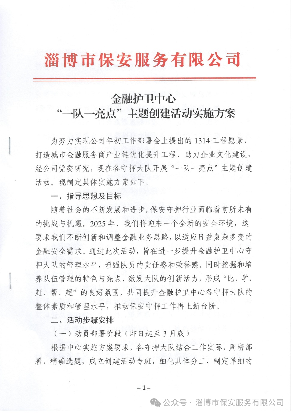 淄博市保安服務有限公司部署開展“一隊一亮點”主題創(chuàng)建活動